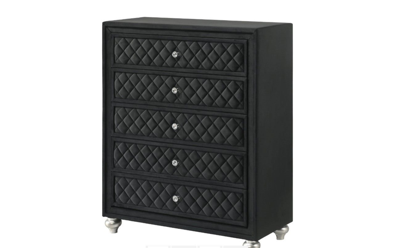 Indulge in timeless elegance and dramatic sophistication with this stunning bedroom collection, designed to make a bold statement. The centerpiece features an exquisitely tufted headboard with luxurious upholstery and intricate nail head trim, exuding opulence and grandeur. Coordinating pieces showcase diamond-patterned tufted accents, mirrored details, and polished hardware, blending classic design with modern glamour. With ample storage and impeccable craftsmanship, this ensemble offers both style and practicality, creating a lavish retreat that embodies refined comfort and striking aesthetics. Perfect for those seeking a bedroom that radiates luxury and charm.