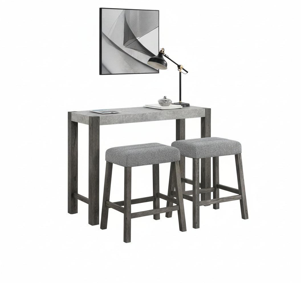 The Rachel Bar Table Set combines contemporary design with practical functionality, featuring a sleek bar table paired with two coordinating stools. This three-piece ensemble is engineered for both residential kitchens and compact dining spaces, offering comfortable seating for two while maintaining a refined aesthetic. The set's proportions work well in modern interiors, delivering the sophistication of a bar setup without requiring extensive square footage. Ideal for entertaining, casual meals, or creating a dedicated beverage station in your home.