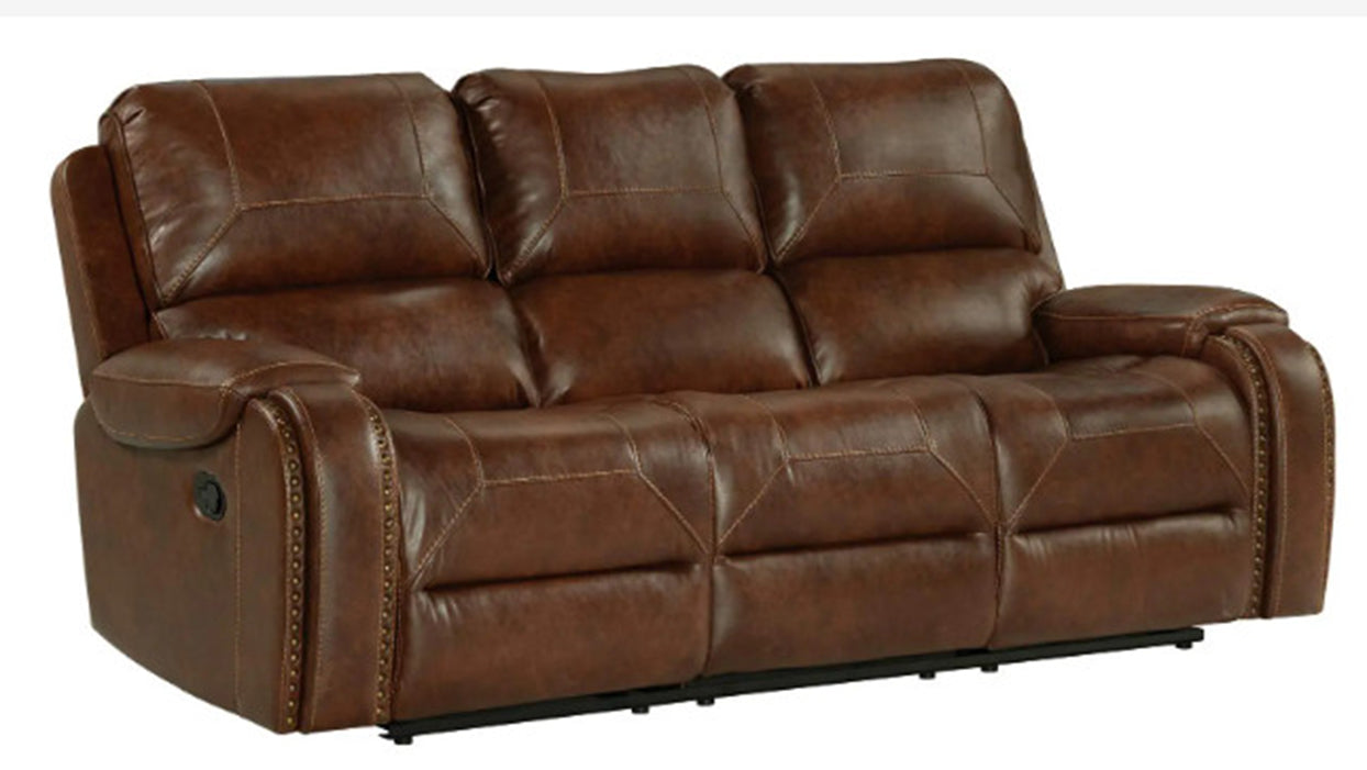 The Garrison Collection with windowpane stitching, nail head trim with Leather-like cover and coil seating make this a unique and comfortable addition to your entertainment room.