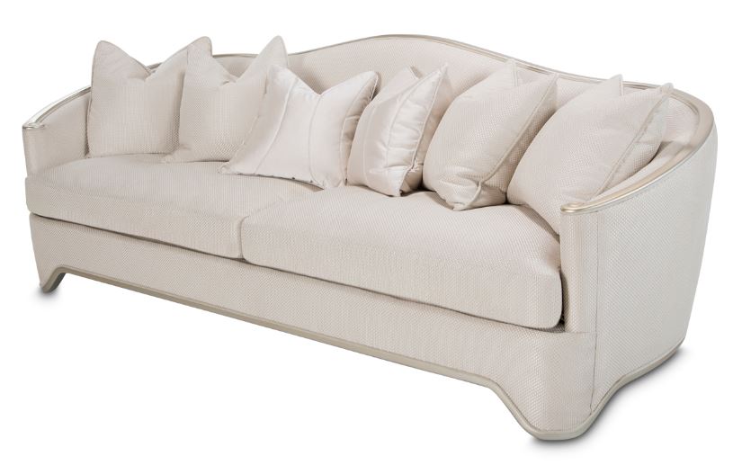 Soft champagne tones, subtle textures, and a chic silhouette make this London Place Sofa the finest piece to brighten your luxury living room with!